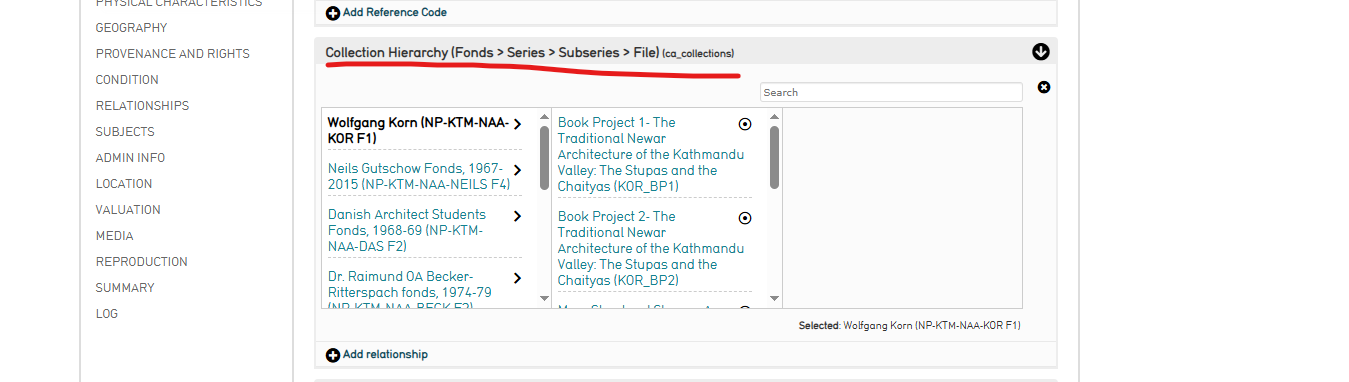 We are attempting to import objects (ca_objects) that are related to collections (ca_collections) organized in a hierarchy (Fonds → Series).